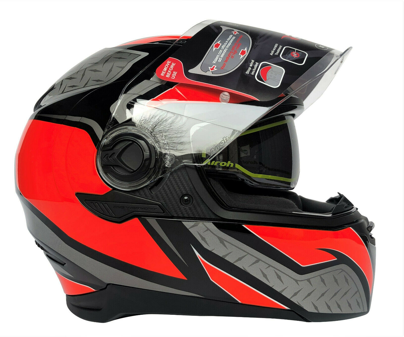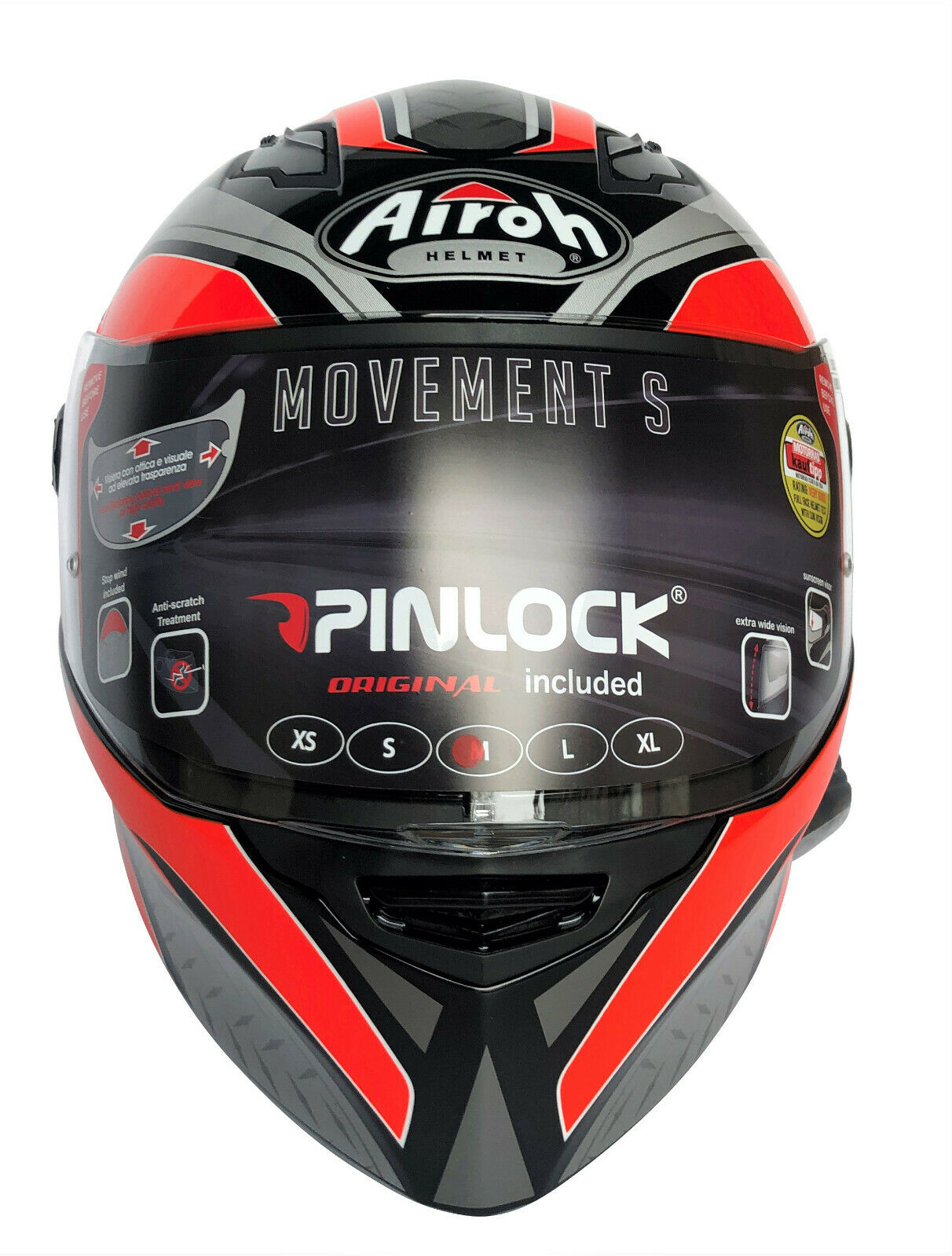 Movement S è il casco da strada che si adatta alla linea di qualunque moto: apprezzabile esteticamente per la linea semplice ed aerodinamica, Airoh Movement S ha ricevuto i riconoscimenti della stampa specializzata d'Europa e non solo (tra le altre la Rivista francese Moto Magazine e l'organo di settore tedesco Motorrad). Grande visibilità anche lateralmente, materiali innovativi e l'areazione interna alla calotta sono le caratteristiche che fanno del Movement S un casco amato da ogni motociclista che ha avuto modo di provarlo in strada.