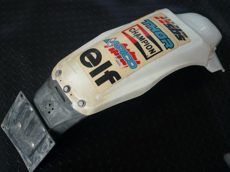 Parafango posteriore usato per l'Husqvarna TE 350 del 1994 ancora in un buono stato generale e comprensivo di porta targa originale.