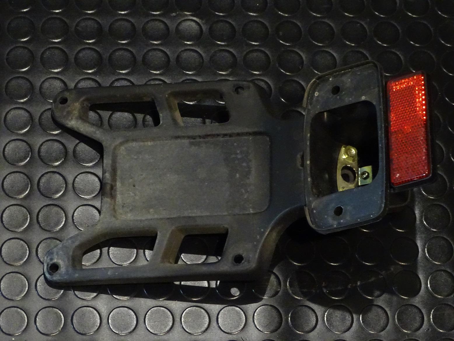 In fase di smontaggio della Honda Xl 200, modello 1985, è stato recuperato nella sua interezza il portatarga, comprensivo di catarinfrangente. Il pezzo si trova in buone condizioni
