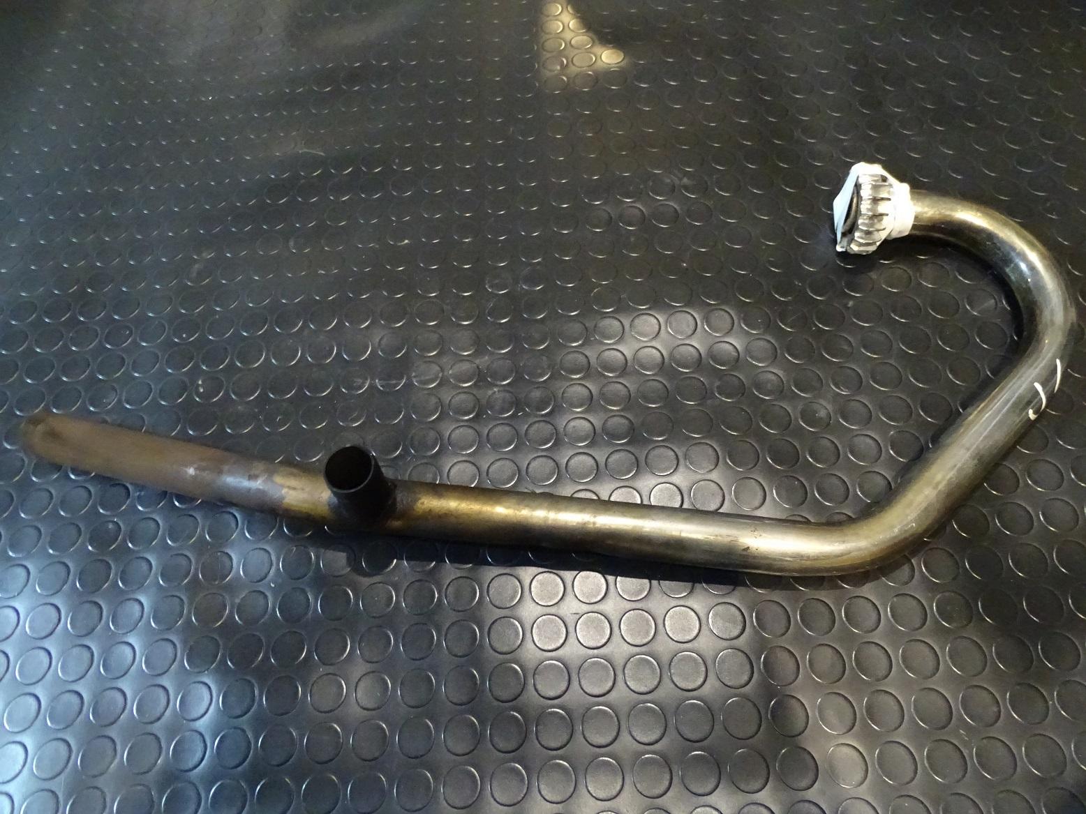 Il sistema scarico del mezzo Guzzi V35 si trovava in condizioni ottimali: il collettore sinistro (in foto) è stato visionato e controllato internamente dall'officina Fresiamoto