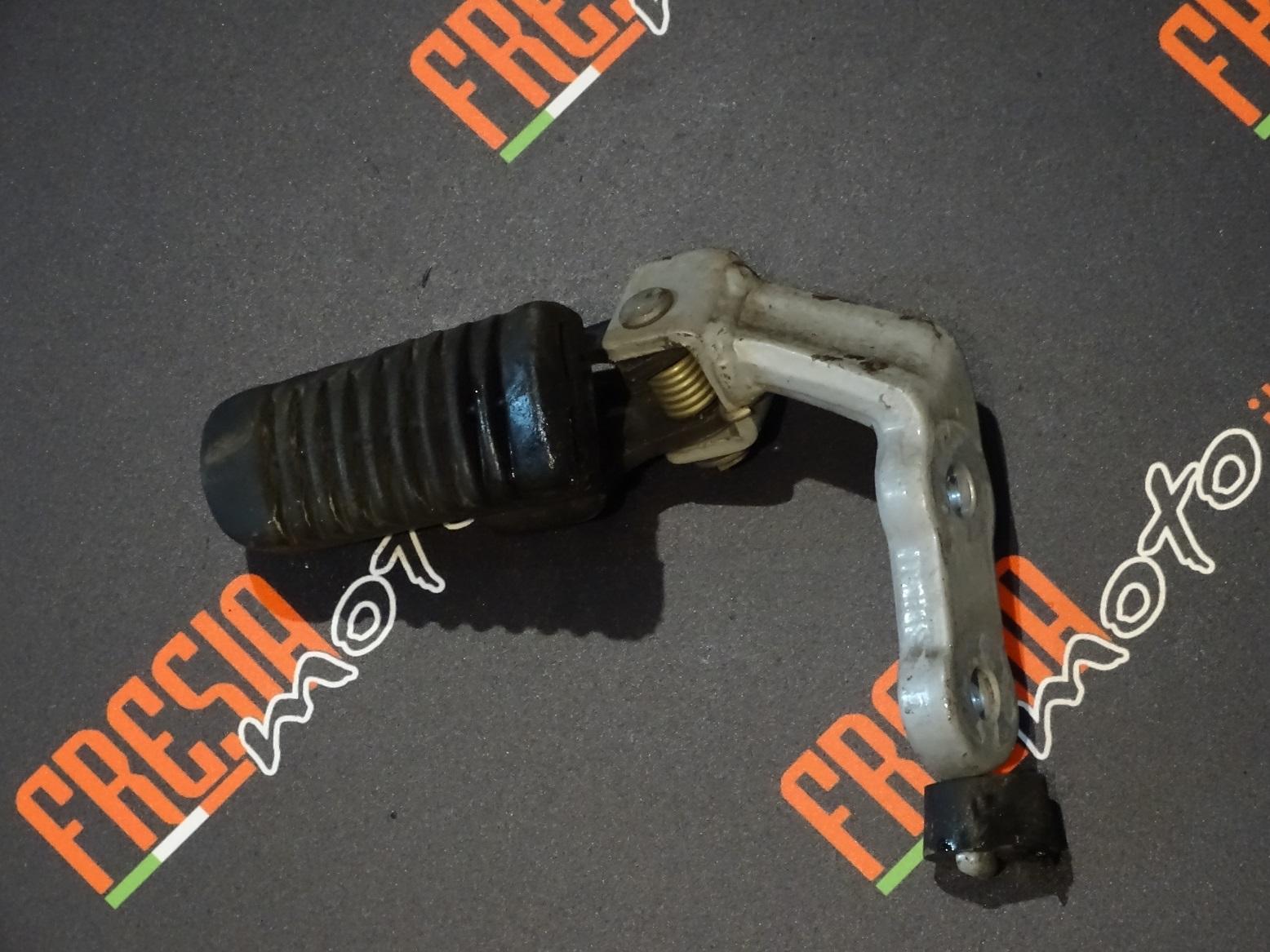 Come per le pedaline posteriori, anche l'anteriore sinistra prevede l'appoggio per il piede, ma anche il supporto per l'aggancio al telaio della moto