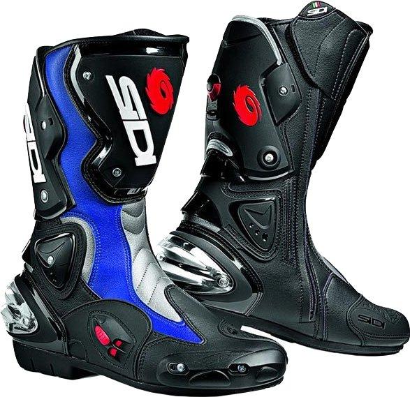 Stivale top di gamma, il Sidi Vertigo blu nero è una calzatura racing, sicura per le alte velocità e le prestazioni sportive