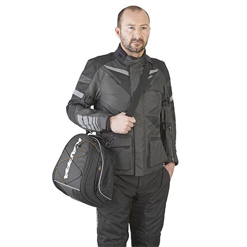 Borsa morbida da sella con un ampio spazio nella parte centrale, la RA300 rappresenta il portabagagli che mancava al motociclista: numerose tasche, parte posteriore rinforzata e imbottita sulla quale il pilota può appoggiarsi, coperta antipioggia e parti riflettenti ad alta visibilità.